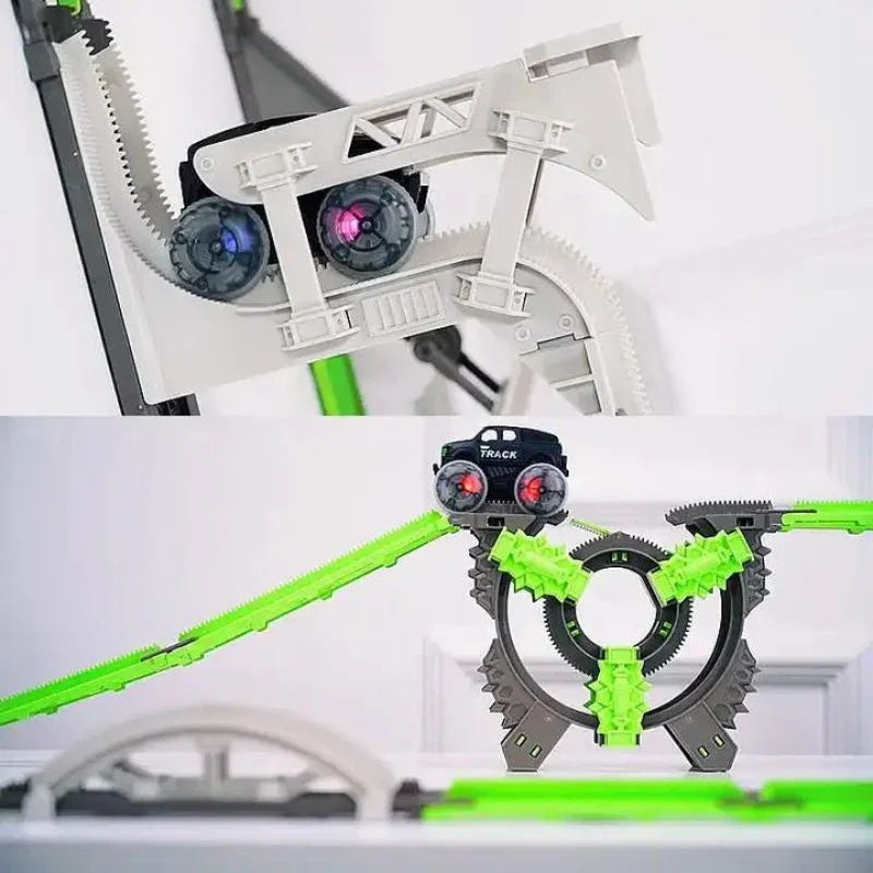 Experience the thrill of our 2022 Stunt Car DIY Track Adventure! Assemble your own electric rail racing car on the slot-free building track, complete with dazzling lights. Get ready for an epic racing adventure like never before